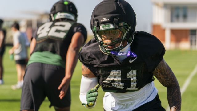 The Baylor linebackers coach was joined by Kyland Reed, Travion Barnes, and Kaleb Burns from his position group to talk with the media after practice on Thursday.