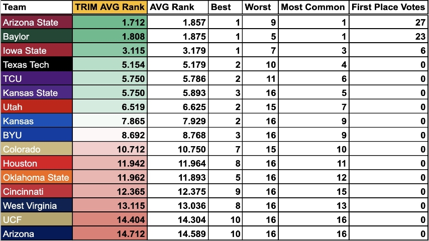 Welcome to the 2025 post-week 0 edition of the SicEm365 Premium “Big 12 Power Poll”. Over the last few days, the awesome members of our Premium Forums had access to a simple form to rank the football teams of the Big 12, however they saw fit, heading into week 1 of the 2025 season.